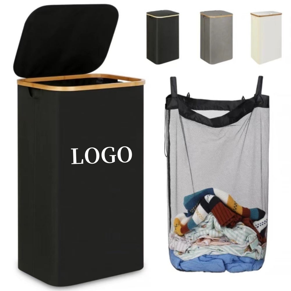 Panier à linge en maille de bambou BAMBOO-Stockage de grande capacité pour la maison
